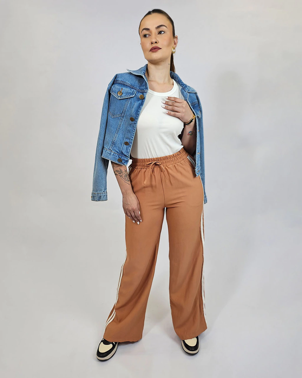 Invista na Calça Naiara para composições que destacam sua personalidade com um toque de requinte e descontração. Uma peça indispensável no seu guarda-roupa!